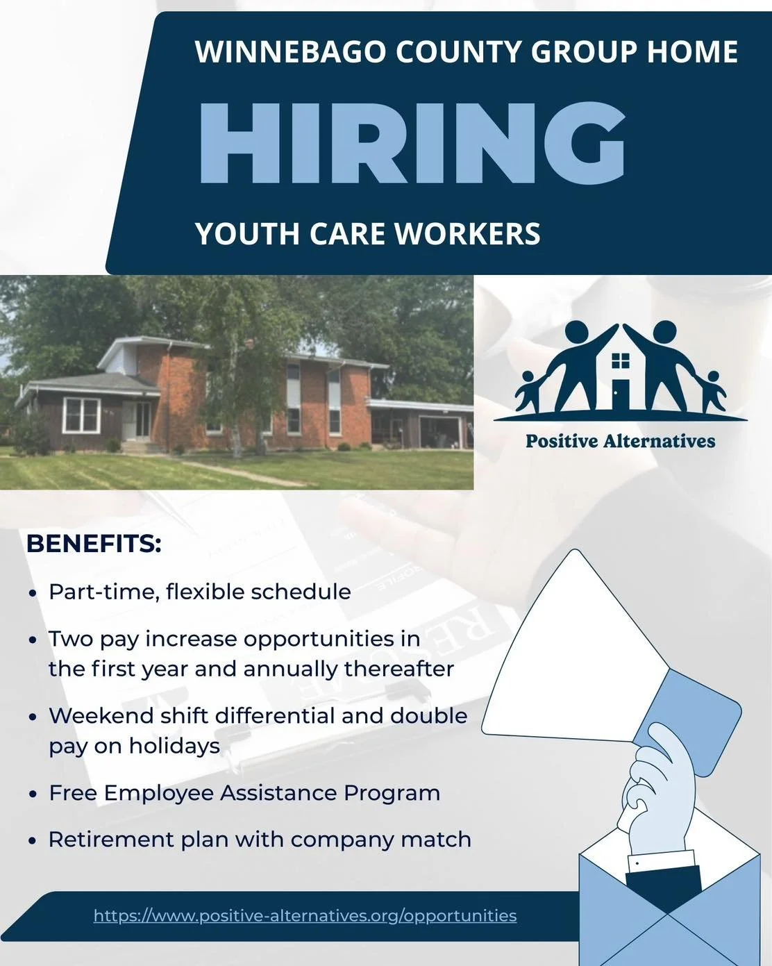 Positive Alternatives offers Aftercare, supporting residents before and after discharge with services like financial planning, mental health support, and employment assistance.